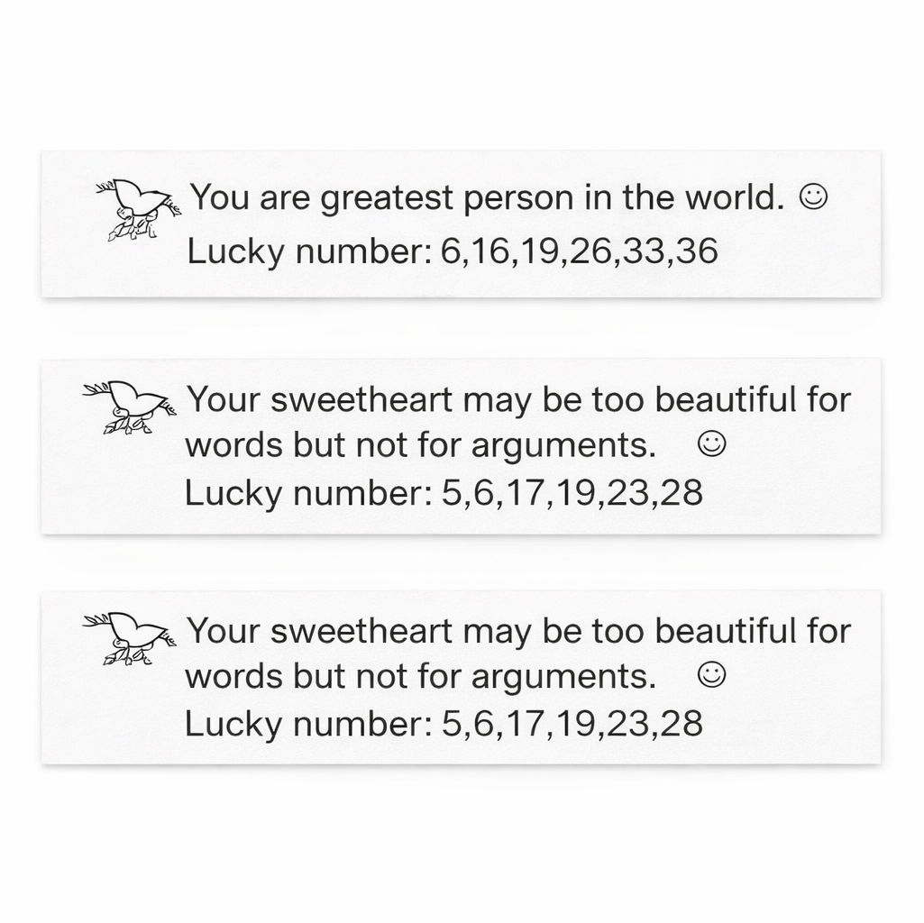 We can Personalize your fortune cookies with your personal messages on the fortune on the paper strip in it .