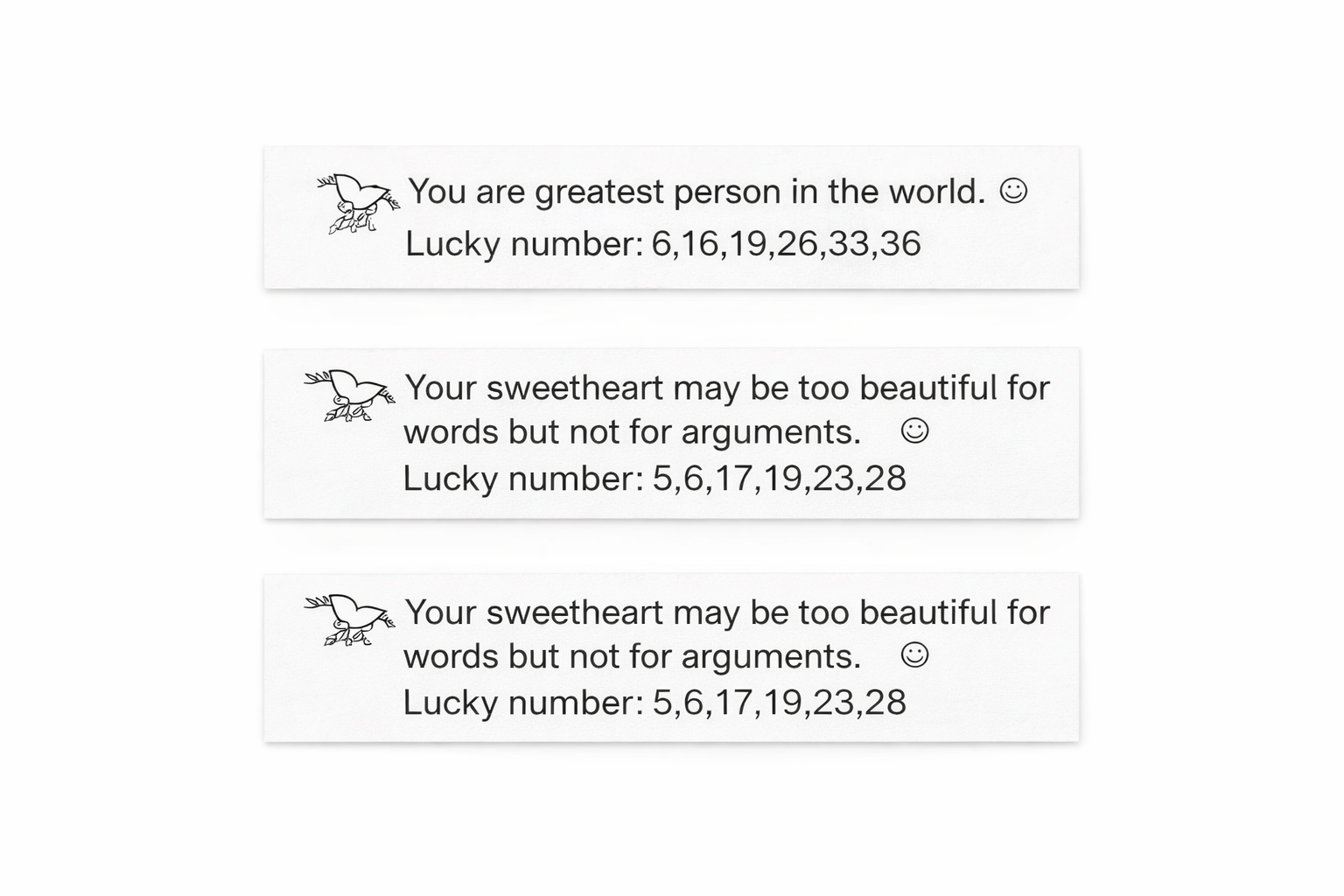 Below is a sample selection to give you an idea of the tone and style of our fortune messages: